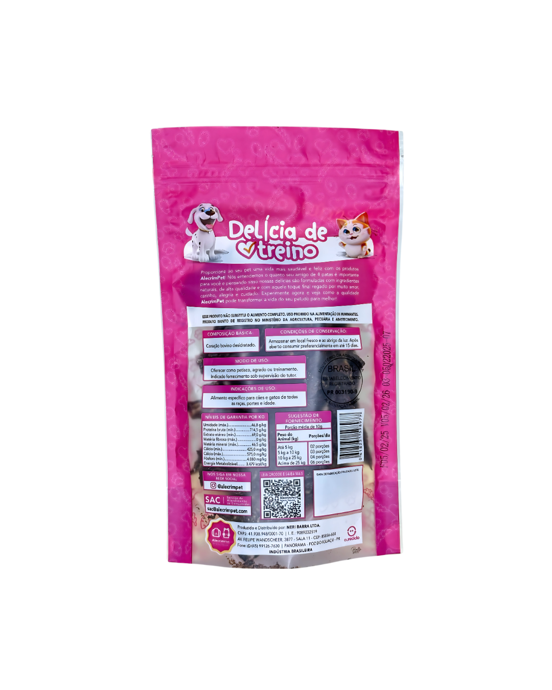 Pode ser oferecido para todos os portes e idades de cães e gatos. É fácil de fragmentar, ideal para treinos, comandos e reforço positivo.
