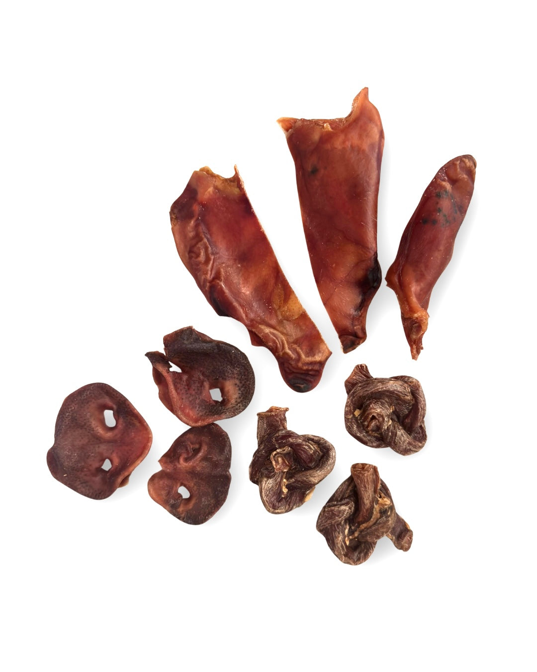 Composição: Orelhas em tiras, focinho, esôfago suíno desidratado.